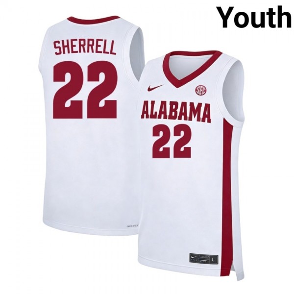 • Youth Aiden Sherrell White Alabama Crimson Tide #22 College Basketball Replica Jersey