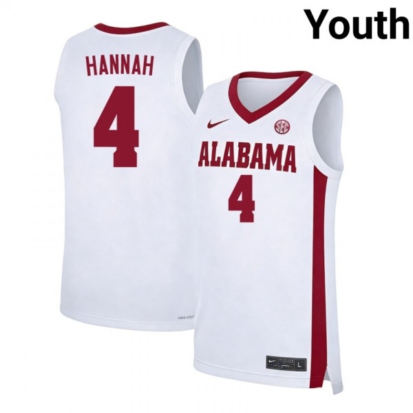 Youth Davion Hannah White Alabama Crimson Tide #4 College Basketball Embroidery Jersey 257114-695