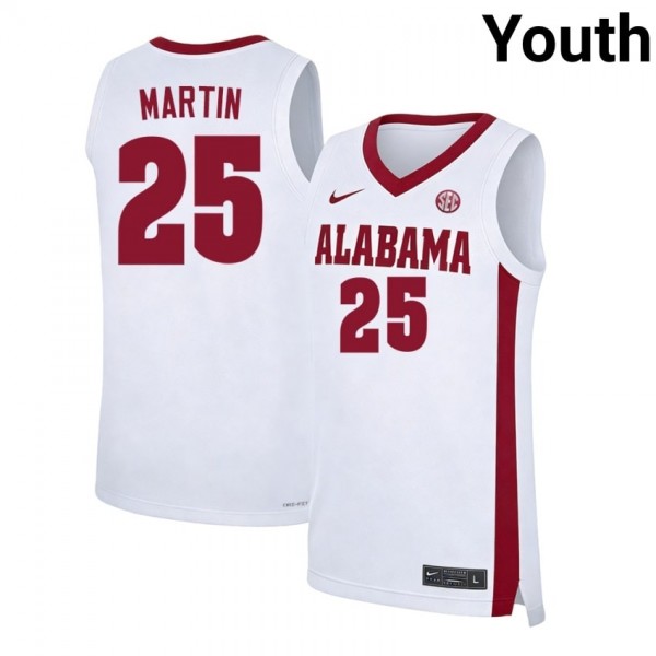 • Youth Jacob Martin White Alabama Crimson Tide #25 College Basketball University Jerseys